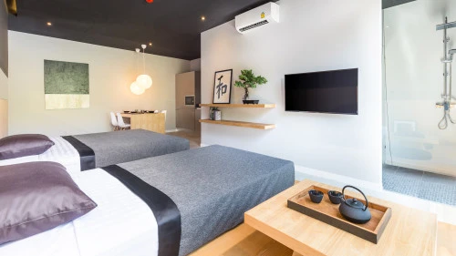 1-комнатные апартаменты в кондоминиуме Villoft Zen Living площадью 70 кв.м. и участком 43 кв.м. с личным бассейном в районе Паклок...