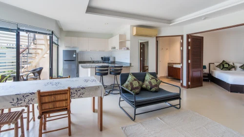 2-комнатные апартаменты в кондоминиуме The Title Residencies Nai Yang площадью 83 кв.м. с бассейном на первой линии, с видом на бассейн...