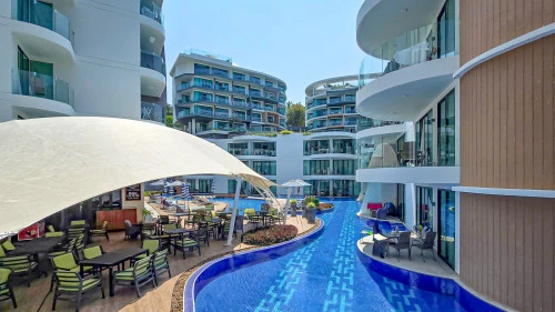 Studio in the Absolute Twin Sands condominium with an area of 50 sq.m. with a swimming pool, overlooking the sea...