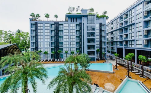 1-room apartment in Citygate Condominiums with an area of 34 sq.m. with pool, overlooking the pool, in the Kamala area...