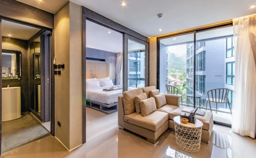 1-room apartment in Citygate Condominiums with an area of 33 sq.m. with a swimming pool, overlooking the mountains, in the Kamala area...