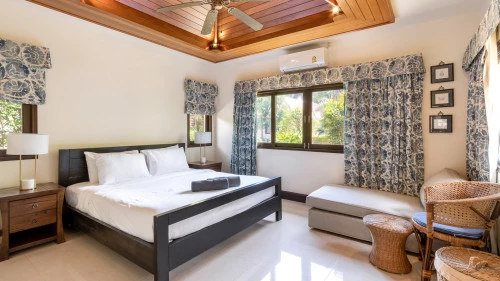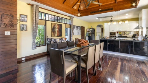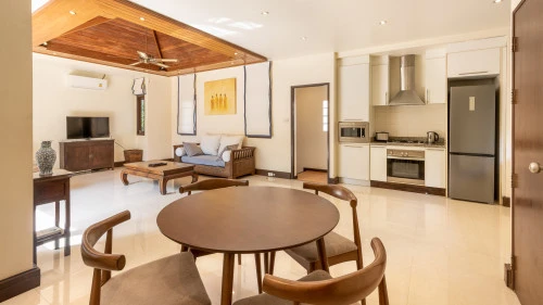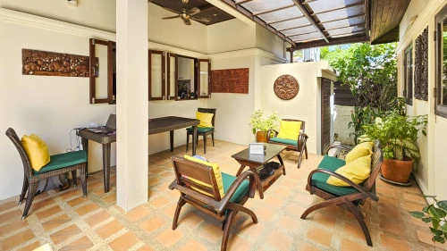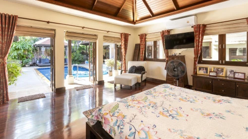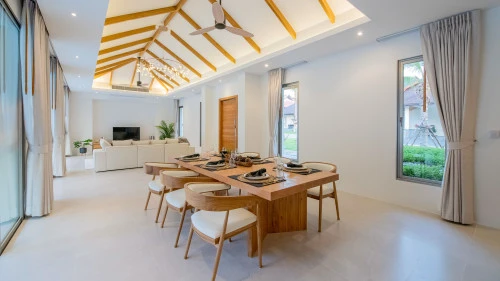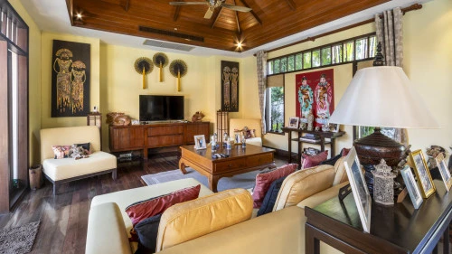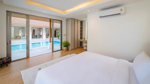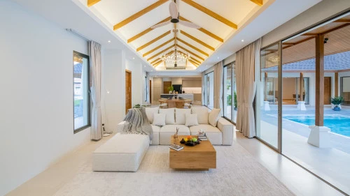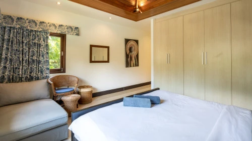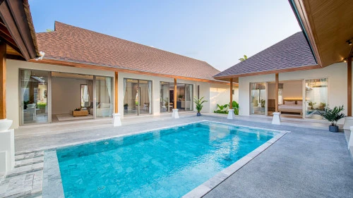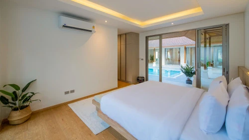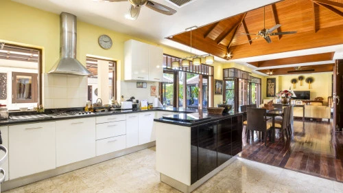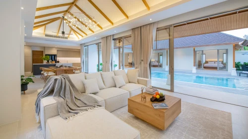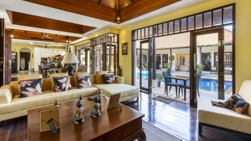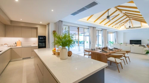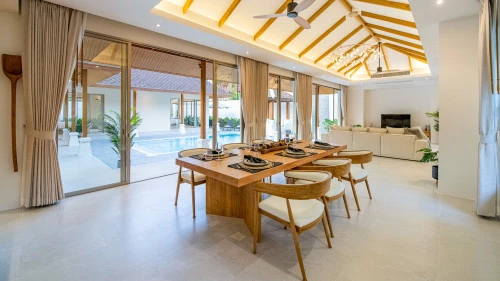Designed in a U-shaped layout, much of the villa offers direct access to the outdoor living area, terrace and private pool. Adjacent to the pool, you'll find a tranquil pool pavilion equipped with a well-equipped kitchen, bar and refrigerator to keep drinks cool and refreshing.