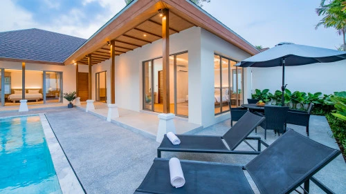 This pool villa is located in The Gardens by Vichara (formerly known as Sujika Gardens), in the Pasak area. It combines Thai and Balinese styles and is located just a few minutes' drive from Laguna Phuket and the attractive beaches of Bangtao, Layan and Surin.