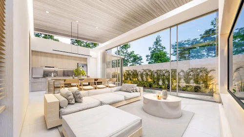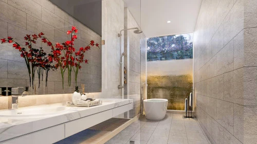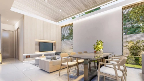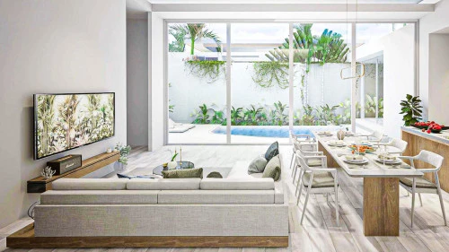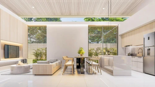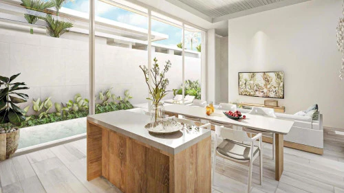Inside the villas there are three or four bedrooms, each boasting bright and airy open plan living and dining areas. The fully equipped Western style kitchen with island provides the perfect place for culinary enthusiasts to prepare meals for their loved ones.