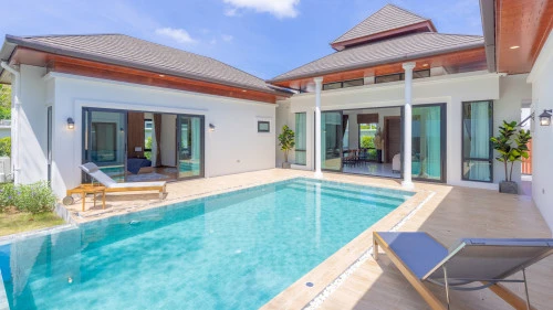 Villa with 2 bedrooms and 3 bathrooms with an area of 192 sq.m. and a plot of 412 sq.m. in the Kiri Buddha Pool Villa complex in Chalong.