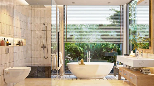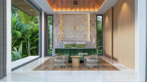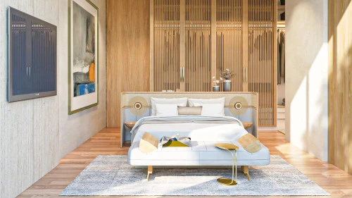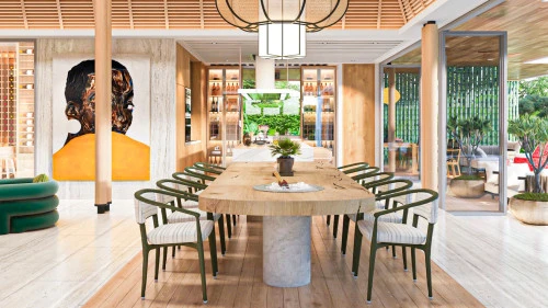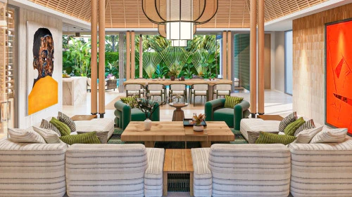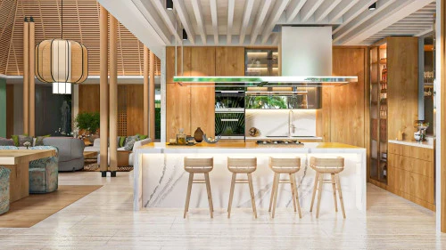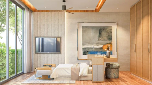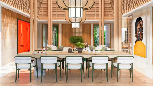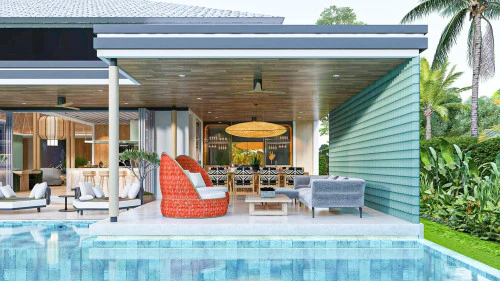 This complex consists of 9 exquisite villas with 3 or 5 bedrooms, each located on a large plot of land. Inside, these villas have carefully designed interiors with spacious and comfortable open-plan living and dining areas, highlighted by high ceilings. The Western kitchen features an island and breakfast bar. To the rear of this space is an additional Thai kitchen and staff room.