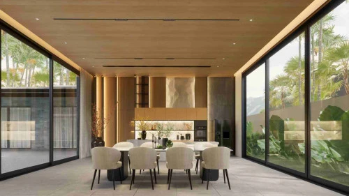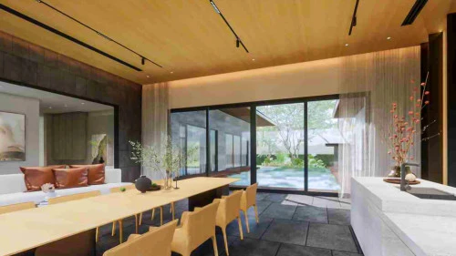 These villas have four bedrooms, each with a private bathroom. At the center of each villa is a spacious open-plan living and dining area, complemented by a modern Western-style kitchen with a convenient island and breakfast bar.