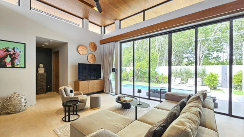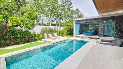 This spacious loft-style pool villa is located within the Botanica Modern Loft complex, located in the popular Pasak area of Cherng Thalay.