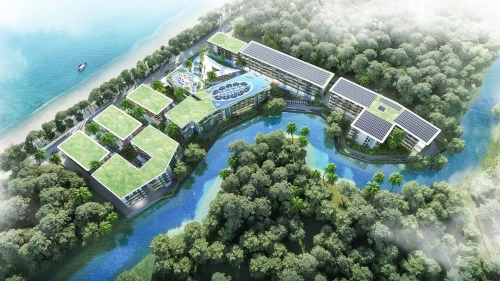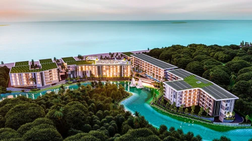 The complex will consist of five 4-storey and four 5-storey buildings, for a total of 672 apartments. 3 of the 9 buildings will be full-time apartments, and the rest will be hotel rooms.