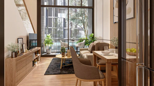 What sets this condo apart from the rest is that it is pet-friendly. The complex includes two 7-storey buildings with a total of 94 apartments, from 1 to 2 bedrooms, as well as duplexes with 1 bedroom.