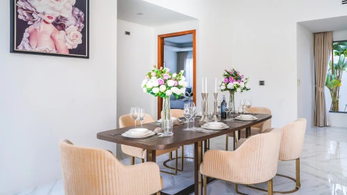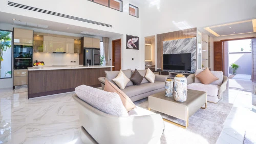 All The 9 villas feature single-story and 3- or 4-bathroom layouts. The interiors consist of a spacious open plan living and dining area with high ceilings, as well as a fully equipped kitchen with a breakfast bar.
