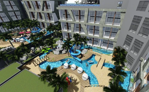 Common project amenities will include 5 swimming pools, a spa, 2 gyms, a rooftop pool bar, 2 restaurants, a kids club, a meeting room and a free shuttle service.< /p>