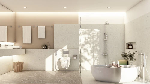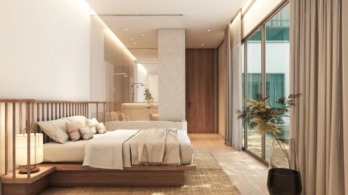 Each villa will be spread over 2 floors and will contain a bright open plan living and dining area, a fully equipped European kitchen and bedrooms, each with an en-suite bathroom. The master bathroom has a separate bath and shower.
