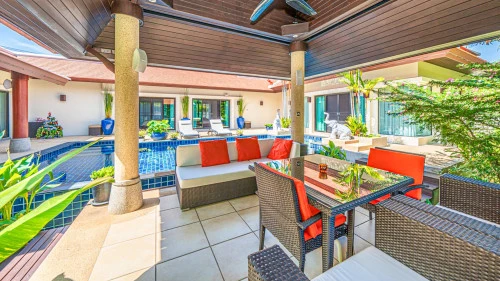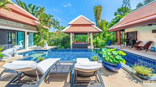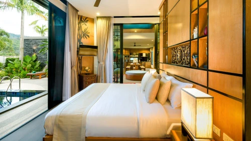 Baan-Nalin Villas by Nai Harn Baan Bua is located in a quiet residential area of Nai Harn. It features pool villas with contemporary architectural design, ideal for large families or those looking for high-quality properties close to Nai Harn Beach, which is just steps away from Nai Harn Beach. a short drive away. These villas provide easy access to the sandy shores of Nai Harn Beach and are conveniently located close to all local amenities and attractions, making them an ideal location for those seeking tranquility and convenience.
