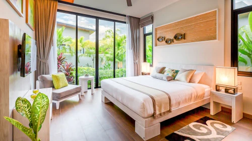 Baan-Nalin Villas consists of 15 stylish villas, available in both single and double storey configurations. Each villa features a simplistic yet contemporary design, emphasizing comfort and coziness, as well as contemporary decor.