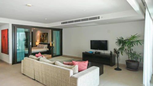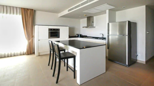 В квартира – светлая и просторная гостиная и обеденная зона открытой планировки Полностью оборудованная кухня с барной стойкой идеально подходит для приготовления еды дома для семьи и друзей. Большие стеклянные двери выходят на просторный балкон, откуда открывается частичный вид на море и залив Чалонг.