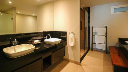 В кондоминиуме две просторные спальни. Главная спальня просторная и включает в себя собственную ванную комнату, а гостевая спальня делит общую ванную комнату с гостиной. Обе ванные комнаты оборудованы отдельными ваннами и душевыми кабинами.