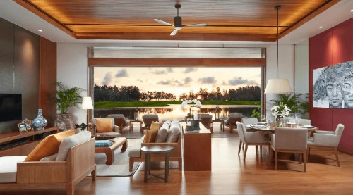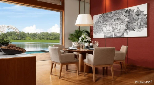 Гостиная свободной планировки наполняется солнечным, искрящимся светом в течение дня. Из любой точки виллы открываются бескрайние тропические пейзажи, и Вы чувствуете постоянное присутствие Андаманского аквамарина и легкое дыхание свежего морского бриза.
