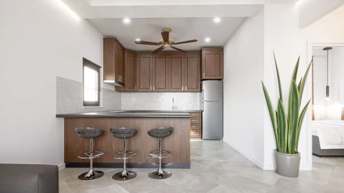 Этот проект состоит из 12 квартир, каждая из которых оформлена в современном стиле, в котором приоритет отдается комфорту и удобству. Внутри вы найдете гостиную и столовую открытой планировки, функциональную кухню и уютные спальни с большими окнами, пропускающими естественный свет. Гостиная выходит на тихий балкон, откуда открывается очаровательный вид на окружающие горы и пейзаж.