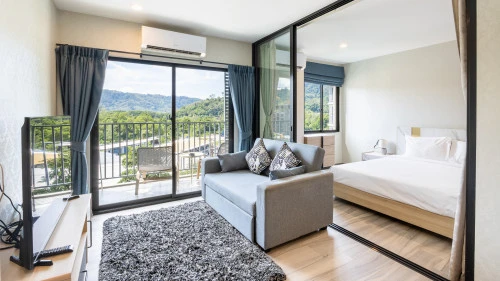 1-комнатные апартаменты в кондоминиуме The Title Residencies Nai Yang площадью 39 кв.м. с бассейном, с видом на горы, в районе Най Янг.