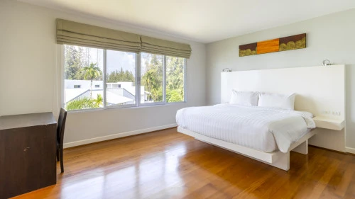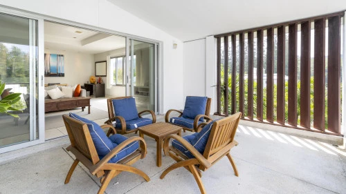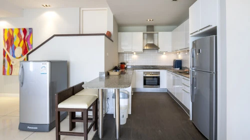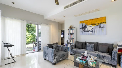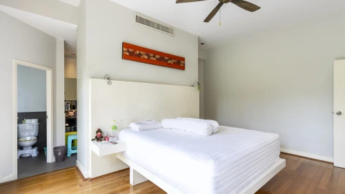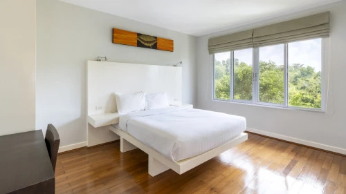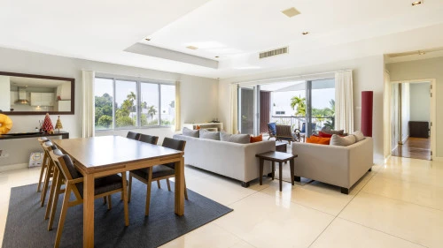 Эта квартира расположена в тихом и малонаселенном районе Grove Gardens на восточном побережье Пхукета. Кондоминиум включает в себя просторный балкон и просторную террасу на крыше. В квартире есть три уютные спальни, гостиная и обеденная зона открытой планировки, а также кухня с барной стойкой. Из гостиной через большие раздвижные стеклянные двери можно выйти на крытый балкон с видом на сад и обеденным столом.