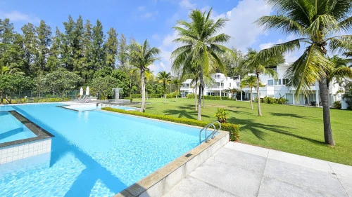 Сам комплекс включает в себя большой общий бассейн, детский бассейн, теннисный корт, фитнес-центр и даже поле для гольфа с 3 лунками.