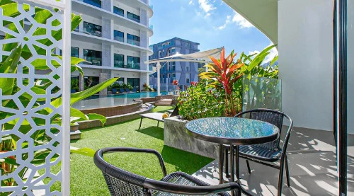 1-комнатные апартаменты в кондоминиуме Cassia Residences площадью 40 кв.м. с бассейном на первой линии, с видом на сад...