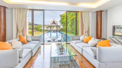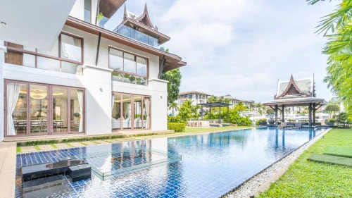 Эта квартира с 5 спальнями, открытой планировкой и оригинальными дизайнерскими концепциями, высокими потолками находится в комплексе Royal Phuket Marina