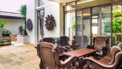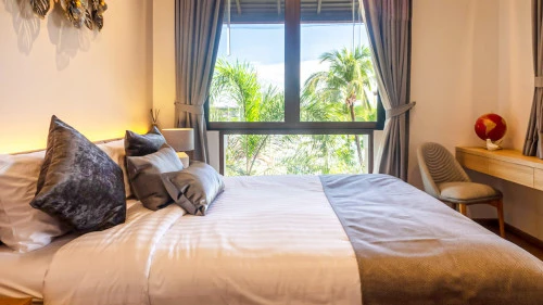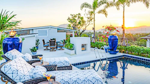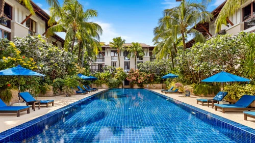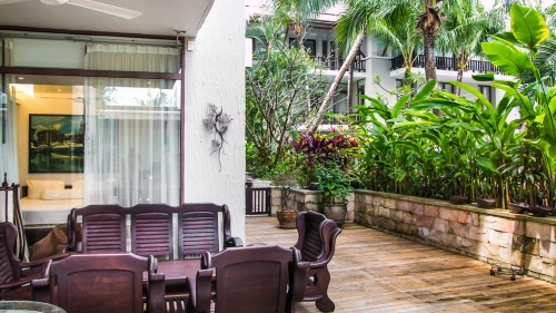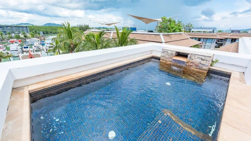 Всего в нескольких шагах от этих апартаментов находится общий 20-метровый бассейн с просторными террасами и видом на пристань Thai Sala.