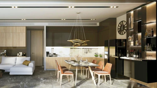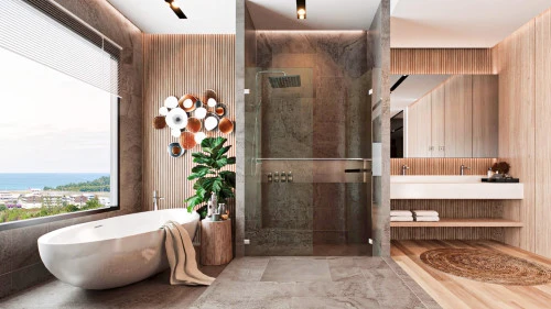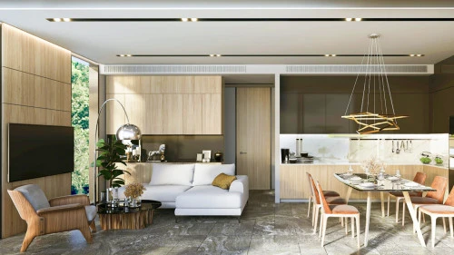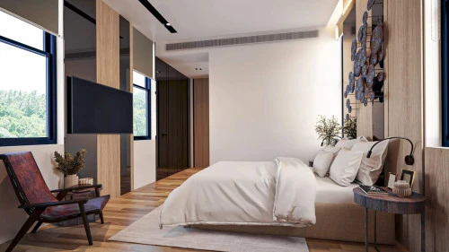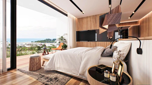 Начиная с самого нижнего уровня каждой виллы, вы найдете крытую парковку на 2 машины, кладовую, а в некоторых резиденциях и третью спальню.