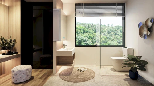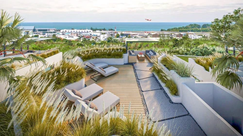 Терраса на крыше доступна исключительно для вилл в верхнем ряду и включает солнечную террасу и открытую гостиную для отдыха, откуда открывается живописный вид на зелень, андаманское море и аэропорт.