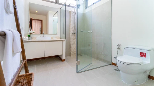 Наверху во второй гостевой спальне есть ванная комната и просторный балкон.
