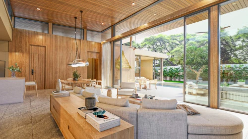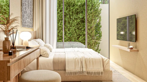 Каждая вилла, спроектированная с одноэтажной планировкой, приветствует вас своими просторными и светлыми интерьерами с высокими потолками, которые усиливают ощущение простора. Сердце виллы — гостиная и обеденная зона открытой планировки, предназначенная для отдыха, а также полностью оборудованная кухня, которая позволяет легко готовить еду.