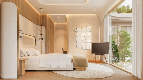 На верхнем этаже расположена главная спальня вместе с двумя дополнительными спальнями для гостей. В главной спальне есть собственная ванная комната с отдельной ванной и душем, а также выход на просторный балкон. В двух гостевых спальнях также есть ванные комнаты с душем и общий балкон с видом на бассейн.