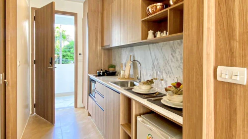Set in a popular neighbourhood close to the Laguna Complex, the Ocean Sands Condos offer a prime residential spot. The unspoiled sands of Bangtao and Layan Beaches are a brief five-minute drive away, inviting residents for leisurely walks and picturesque views. A mere ten minutes in the car opens up the Cherng Talay district, bustling with a selection of eateries, retail hubs, spas, and nightlife venues. Phuket International Airport is just about a 25-minute drive from the condos.