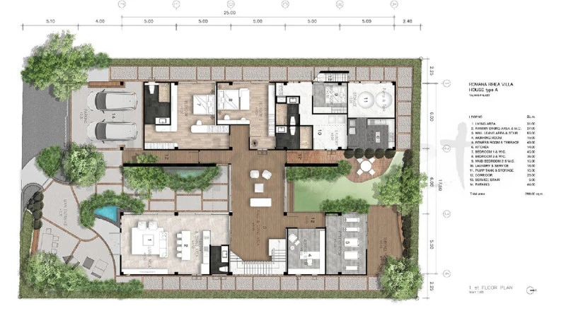 Каждая вилла может похвастаться первоклассной отделкой и самыми современными удобствами, такими как частный пейзажный бассейн, просторная терраса у бассейна, терраса/гостиная на крыше и просторный сад. Внутри есть 4 или 5 спален, просторная гостиная и столовая открытой планировки, полностью оборудованная кухня и помещение для прислуги. Есть большой балкон и террасы для отдыха и занятий на свежем воздухе.