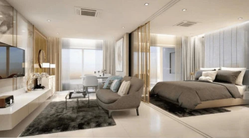 - Квартиры студио с 1 и 2 спальнями