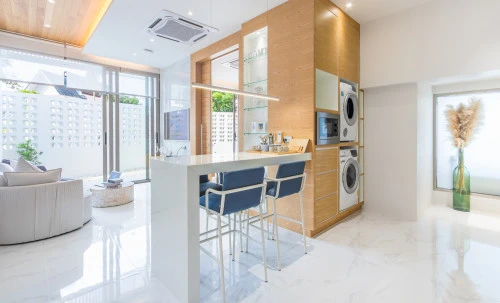 Проект Residence Prime Villas Cherng Talay расположен в быстро развивающемся жилом районе рядом с комплексом Laguna Phuket, что делает его удобным выбором для тех, кто ищет современный и стильный образ жизни. Этот проект, разработанный одним из самых успешных застройщиков на Пхукете, включает в себя 28 трехэтажных вилл с бассейном, каждая из которых спроектирована с использованием современных технологий «умный дом».