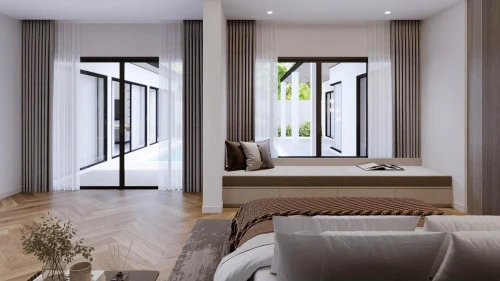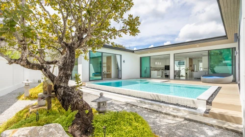 Вилла выполнена в форме буквы U с большим частным бассейном и террасой для отдыха. Такая конструкция обеспечивает прямой доступ к бассейну из любой части здания.